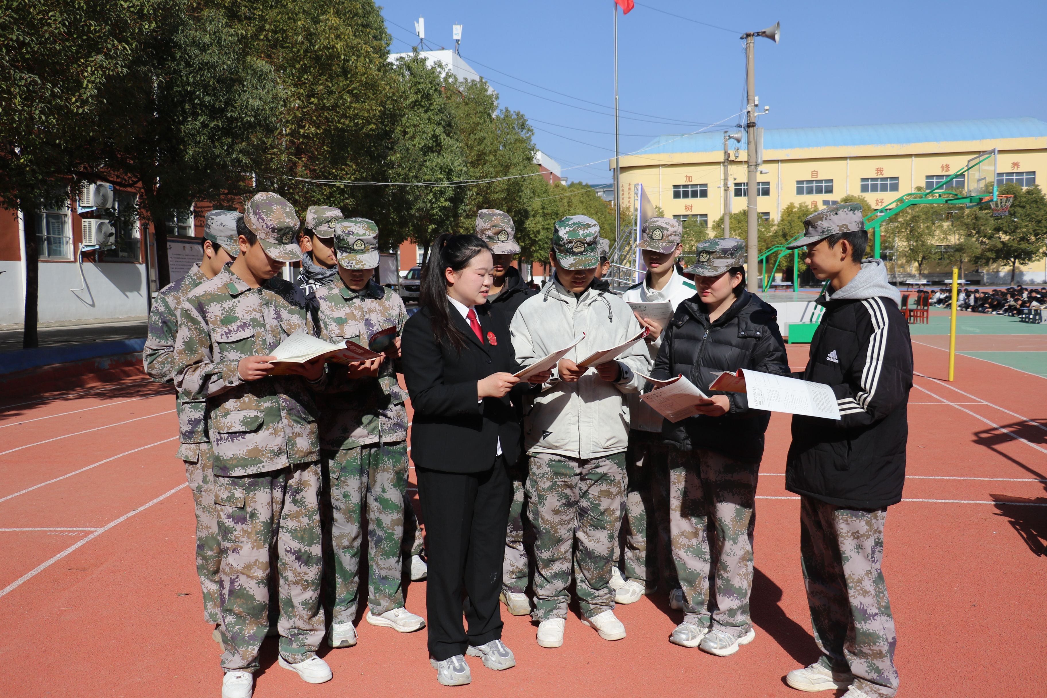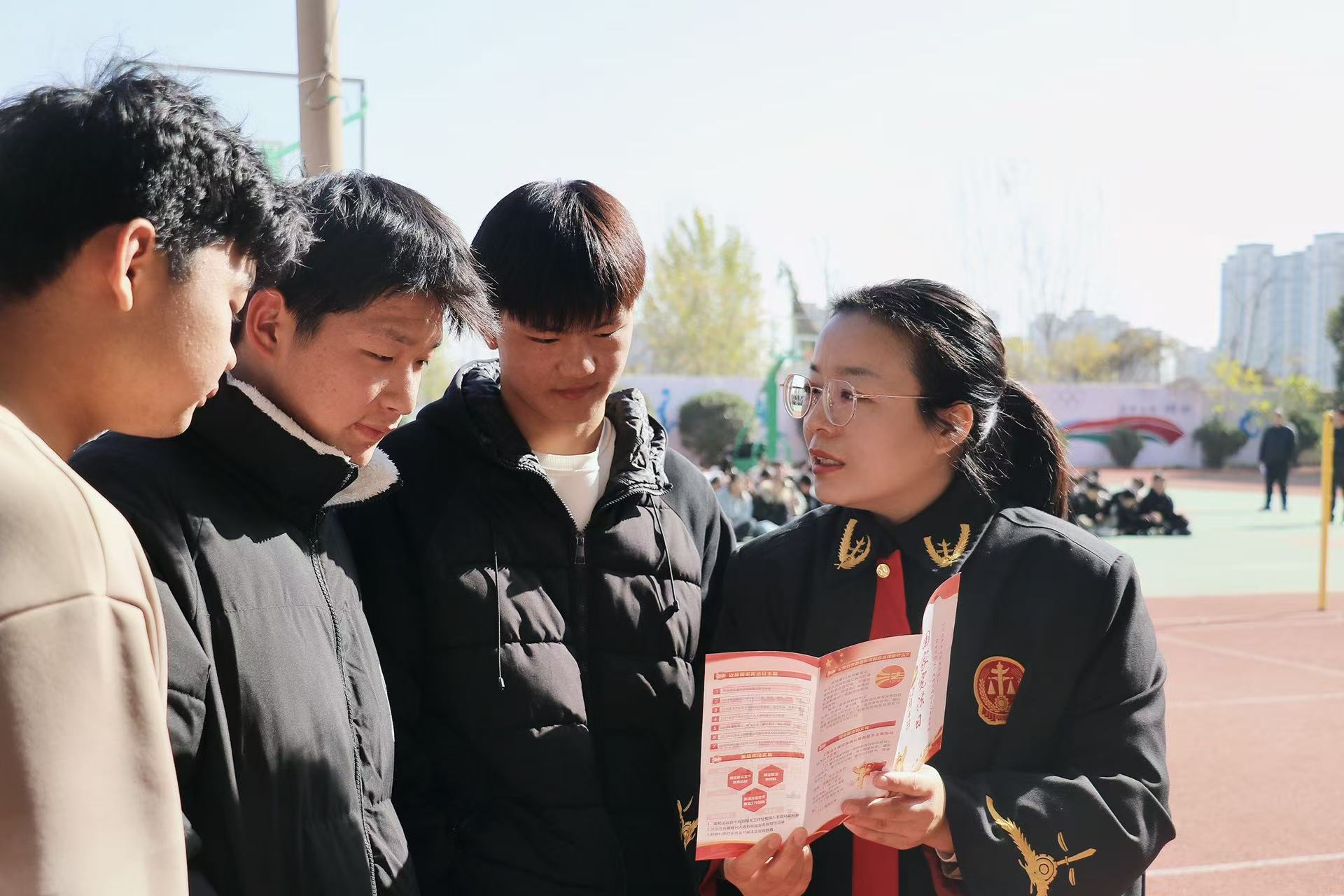 庭审结束后,法院工作人员趁热打铁开展普法延伸宣讲,针对案件中涉及的诈骗手段、法律责任认定等关键问题,结合相关法律法规进行通俗解读,向同学们详细讲解了近年来未成年人聚众斗殴、寻衅滋事、帮信、掩隐等高发犯罪类型的危害后果以及预防措施。同时向同学们宣讲宪法是国家的根本法,从出生到年老,生活的一点一滴,人生莫不和宪法密切相关。随后,法院工作人员还向师生发放宪法宣传单和普法手册,围绕青少年日常可能遇到的法律风险开展互动交流,耐心解答同学们的疑问,引导大家增强宪法意识和“学法、懂法、守法、用法”的法治思维。